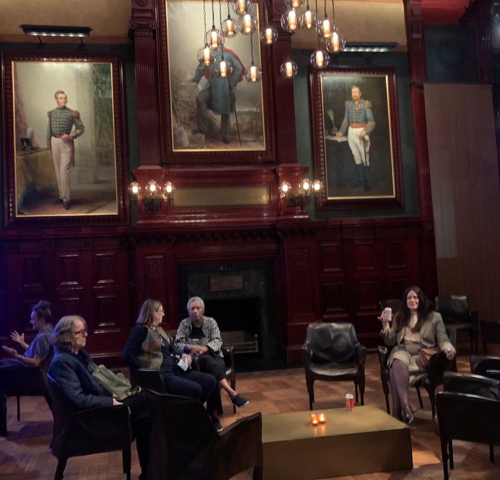 Ich merke gerade, dass das alles schon wieder viel zu lang ist, was ich hier schreibe. Dies ist ja schließlich kein Feuilleton. Ich solle lieber öfter und regelmäßig posten, wurde mir gesagt, sonst sei das gar kein richtiger Blog. Ich werde mir das zu Herzen nehmen. Da ich selbst ungern Kritiken von Konzerten lese, die ich nicht besucht habe und auch nicht mehr besuchen kann, werde ich mich im Folgenden kurzfassen. Am nächsten Abend bin ich im Park Avenue Armory – eine Historische Stätte für Avantgardekunst heißt es auf GoogleMaps. Historisch ja, aber an Avantgarde denkt man nicht, wenn man hineinkommt. Gemälde mit ausgezeichneten Offizieren hängen an den vertäfelten Wänden. Das Publikum eher wie im Lincoln Center als im Apollo-Theater. Im riesigen runden eigentlichen Aufführungsraum in der Mitte ein großer Kreis, drumherum sitzen bereits die Performancekünstlertänzersängerinnen. Hinten die Musikerinnen und Musiker. Das neue Stück Indra´s Net von Meredith Monk war mir von mehreren Menschen empfohlen worden. Ich finde es sehr schön. Nach den beiden Veranstaltungen am Vortag erscheint es mir fast zu harmonisch. Ich muss an die Wassermelonen denken. Dafür kann das Stück nichts.
