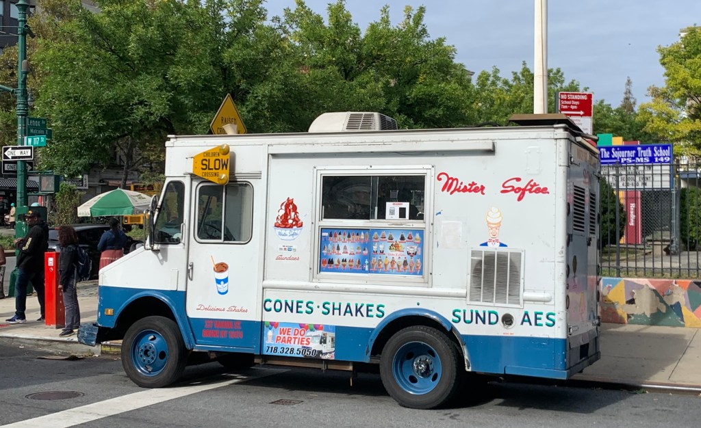 Aber es würde passen. Auf dem Weg ins Double Dutch Espresso oder zum Teachers College gehe ich regelmäßig an Minton´s Jazzclub vorbei – der Lieblingsclub von Miles Davis, wie mir erzählt wurde. Die New York Times und ein bilderreicher Blog-Post auf der Internetseite des Reiseführers Lonely Planet behaupten übereinstimmend, in diesem Club sei der Bebop erfunden worden. In einer studentischen Arbeit aus einem Columbia-Kunstgeschichte-Seminar Mapping the American Past wird erklärt, dass der Besitzer an Montagen, wo die Musiker üblicherweise einen freien Abend hatten, unbezahlte Jam-Sessions veranstalten durfte, weil er einen guten Draht zur Gewerkschaft hatte. Eine Gelegenheit zum Experimentieren. Solche Jam-Sessions finden noch immer statt, wie dem Programm zu entnehmen ist, das draußen in einem Glaskasten aushängt. Die Namen Dizzy Gillespie und Thelenonius Monk sehe ich dort allerdings nicht. Die angekündigten Combos kenne ich nicht. Meine Bitte an alle Leserinnen und Leser: Vielleicht können diejenigen, die sich mit Musik auskennen, das wöchentliche Programm verfolgen und mir rechtzeitig Empfehlungen geben. Nicht nur im Minton´s. Im Grunde gerne mit Blick auf das gesamte Konzertangebot in New York. Das ist unübersichtlich. Der Hot House Jazz Guide überfordert mich. Bis ich mir einen Überblick verschafft habe, ist es längst zu spät, um noch aus dem Haus zu gehen. Zur schnellen Orientierung wurde mir die App Who´s Playing Tonight empfohlen, in der ich jeden Tag nachschauen kann, was heute Abend in welchem New Yorker Jazzclub läuft. Das hilft aber nicht wirklich. Es ist einfach zu viel. Deshalb bleibe ich oft zuhause. Musik gibt´s auch so. Es reicht, das Fenster zu öffnen. Gleich unten an der Ecke steht ein Eiswagen, der mehrmals am Tag bis spät für ein halbes Stündchen die Melodie von The Entertainer mit Spieluhrklang in Dauerschleife abspielt, um auf sich aufmerksam zu machen und mich zu unterhalten.