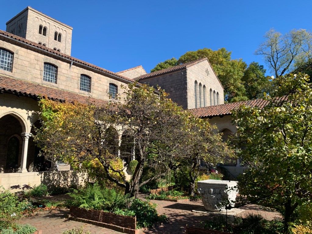 Mit diesen düsteren Zeilen möchte ich den Blog nicht beschließen. Um all das historisch einordnen und dadurch etwas relativieren zu können, habe ich heute The Cloisters besucht, die Mittelalterabteilung des Metropolitain Museum of Art. In der Geschichte Europas ist ja auch nicht immer alles gut gelaufen. Vielleicht müssen wir in sehr langen Zeiträumen denken, um Trost zu finden. Das täuschend echt nachgebaute Klostergebäude liegt wunderschön im Fort Tryon Park im Norden Manhattans, oberhalb der 190sten Straße noch hinter dem Little Red Lighthouse, von dem in einem früheren Blog die Rede war. Der sonnige Herbsttag ist perfekt. Mir war der Besuch vielfach empfohlen worden. Eine Zeitreise nach Europa. Statt Christian nationalism gibt es vorwiegend sakrale Kunst: ein Alabasterheiliger aus Nottingham, handgeschnitzte Madonnen aus Umbrien und der Toskana, eine rheinische Pietá neben einer Maria aus Flandern, katalanische Doppelgräber aus Kalkstein, ein Bronzesoldat zu Pferde aus Nürnberg mit italienischen Einflüssen neben einem Bronzehahn aus Niedersachsen, weibliche Heilige („wahrscheinlich aus Brüssel“), die auf einem Alabasteralter aus Aragon platziert wurden, gleich unter einem Triptychon von der Burg Weiler bei Heilbronn. Auch Köln ist vertreten: Mariä Himmelfahrt geschnitzt von Tilman Heysacker. Prag neben Lübeck, die Pyrenäen dicht beim Elsaß. Ich lausche der Führerin einer Besuchergruppe, die betont, dass die gotische Kapelle selbstverständlich nur eine Stilkopie sei, die Kirchenfenster aber authentisch. Schmuckstück des Hauses sind die Einhorn-Wandteppiche (ziemlich sicher aus Brüssel, sagt die Ausstellungsführerin). (Interessant: Wenn ich die deutsche Übersetzung von Unicorn Tapestries bei Google eingebe, kommen Bilder von Kinderzimmerwandbehängen; im Englischen werde ich Jahrhunderte zurück und zur MET geleitet) Es ist faszinierend: Die mittelalterliche Geschichte Europas wird in einem zweistündigen Rundgang durch 7 bis 8 Räume für ein internationales interessiertes Publikums zusammengefasst. Es erinnert mich an Sammlungen chinesisch-japanisch-koreanischen Porzellans in einem ostasiatischen Museum oder eine Ausstellung zu Inkas, Azteken und Mayas, die ich in Deutschland gesehen habe. Ich bleibe eine ganze Weile im Klostergarten sitzen. Ein Stück Heimat. Irgendwann werde ich die Kolleginnen und Kollegen aus New York mal zum Retreat unseres Kölner Forschungskolloquiums ins Kloster Steinfeld einladen. Die werden Augen machen.