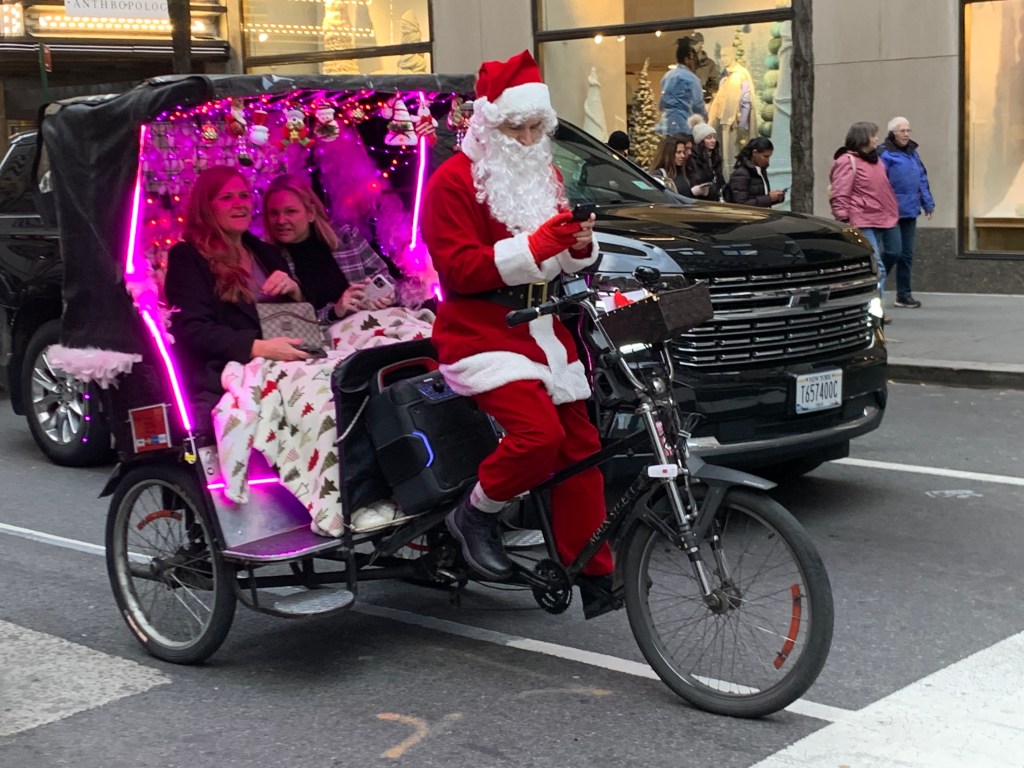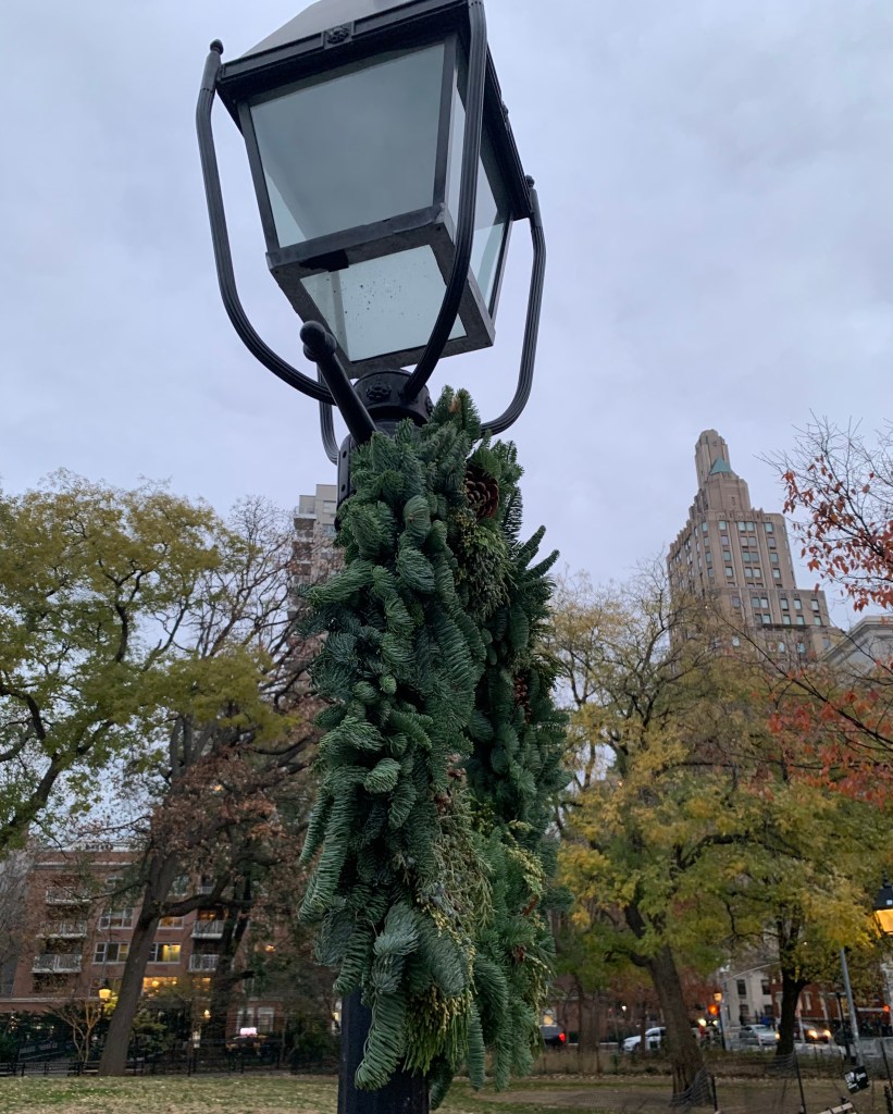Das Foto hatte ich schon vorgestern gemacht. Ich hoffe, dass es der Nikolaus noch rechtzeitig durch den dichten Verkehr zu Euren frisch geputzten Stiefeln in Deutschland geschafft hat. Das Rätsel des vierten Dezember ist nun auch aufgeklärt. Die Nachricht, die ich heute (an meinem) morgen erhielt, lautete: „Hmmm, ich bin mir nicht sicher, aber vielleicht ist das Bild vom Bryant Park? Umgebaut zu einem Weihnachtsmarkt? Im Sommer sieht es dort anders aus.“ In der Tat. Noch im September hatte ich dort zweimal auf der Wiese gesessen und Konzerten gelauscht. Auf der Eisfläche fuhren dann seit Ende Oktober Menschen in kurzen Röcken und Hosen ihre Kreise, bis in der zweiten Novemberhälfte auch hier der Wintereinbruch kam. Zwischendurch war etwa eine Woche Herbst, so wie ich Herbst aus Deutschland kenne, ungemütlich feucht mit Regen und Wind. Nun ist es kalt, aber sonnig und Winter Village at Bryant Park. Mit Raclette, Glühwein, heißer Schokolade mit Marshmallows (die mein Besuch schon Anfang November probiert hatte) und vielen Ständen, an denen man kleinere Geschenke und Adventsbedarf erstehen kann.