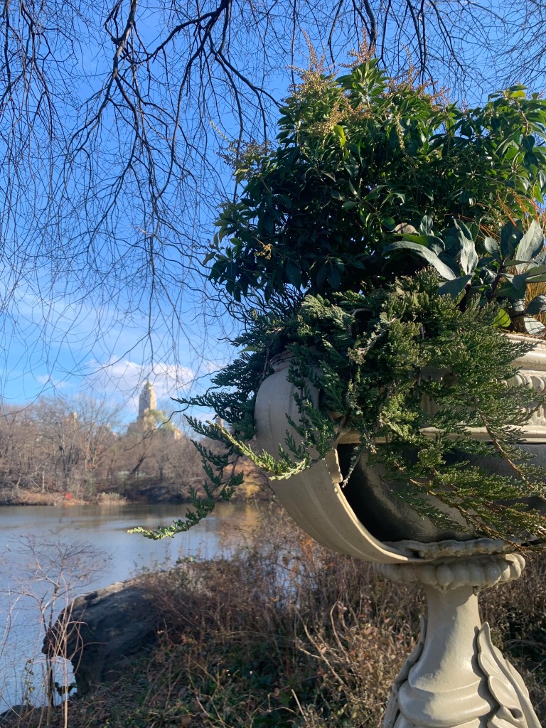 Das Foto täuscht. Es ist vor einigen Tagen bei dem Spaziergang im Central Park entstanden. Heute regnet es. Aber das Rätsel des 5. Dezember ist gelöst. Wo war ich am Abend des 4. Dezember lautete die Frage. Ich habe mir die Oper Die Frau ohne Schatten von Richard Strauß mit einem Libretto von Hugo von Hofmannsthal angeschaut. Und zwar, wie in der Nachricht, die gestern ankam, zurecht vermutet wird: „Mir scheint das war in der Metropolitan Opera“. Die ist Teil des Lincoln Center, das ich bei der nächsten New York Reise zu besuchen empfehle. Ganz praktisch, dass verschiedene Veranstaltungssäle um einen Platz versammelt sind. Und wer mag, kann gleich nebenan an der Juilliard School Musik studieren. Die Oper war recht lang, es gab zwei Pausen. In der ersten intermission wurden der Berliner Gastwissenschaftler, der mit mir in der Vorstellung war, und ich von einer einheimischen Besucherin angesprochen, die uns deutsch reden hörte und wissen wollte, ob wir eigentlich irgendetwas vom Text verstehen könnten. Ich hätte kein Wort verstanden, gab ich zu, sondern mich notdürftig am sichtbaren Bühnengeschehen orientiert und glücklicherweise vorher noch einmal nachgelesen, worum es geht. Als sich die Dame dankend entfernt hatte, machte mich mein Begleiter freundlich darauf aufmerksam, dass es vorne am Sitz des Vordermanns eine Anzeige gebe, auf der man den Text verfolgen könne, wahlweise auf Englisch, Spanisch und original auf Deutsch. Der Hinweis war hilfreich. Ich sollte öfter in die Oper gehen. Akt 2 und 3 machten dadurch noch mehr Spaß. „Das Libretto gilt allerdings als mit missverständlichen Symbolen überfrachtet“, heißt es auf Wikipedia. Dem Urteil kann ich mich anschließen. Die märchenhafte Sprache von Hofmannsthal war trotz Untertiteln nur schwer zu verstehen und ich linste gelegentlich auf die Anzeige schräg vor mir, um die englische Übersetzung zu bewundern. Eine unmögliche Aufgabe. Dort stand ein anderes Stück. Die Musik des riesigen Orchesters (es hätte wirklich keine Triangel mehr in den Orchestergraben gepasst) hat eine dem Text ähnliche „Tendenz zum Überschüssigen“, wie der Opernführer von Ulrich Schreiber im Wikipedia-Artikel zitiert wird, was mir aber passend erscheint. Untertitel hätte ich auch gebrauchen können, meinte mein Nachbar, der am gleichen Abend King Lear in einer Inszenierung mit Kenneth Branagh im neuen Aufführungsort The Shed am nördlichen Ende der Highline besucht hatte. Das Shakespeare-Englisch habe auch ihn als Muttersprachler etwas überfordert. Das Stück hätte ich natürlich auch gerne gesehen, nach gründlicher Vorbereitung, aber New Yorks Kulturangebot verlangt Entscheidungen.