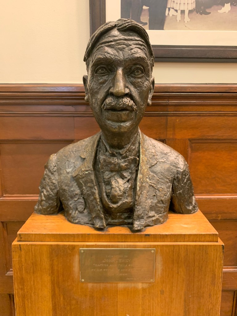 Gestern habe ich dem Teachers College einen letzten Besuch abgestattet. Die Tage sind nun voller Abschiede. Im Department of Arts and Humanities präsentierten Master-Studierende ihre Semesterergebnisse eines Kurses zu kreativer Musikpraxis. In Gruppen waren kleine Kompositionen und Improvisationen erarbeitet worden. Die Teilnehmenden hatten als undergraduates überwiegend ein Studium der klassischen Musik absolviert und wenig bis gar keine Erfahrung mit Improvisation auf ihrem Instrument. Eine sehr heterogene Gruppe, die meisten kommen aus China. Mein Nachbar hatte die musikpraktische Arbeit mit dem Lesen von musikpädagogischen Texten verknüpft, um Konzepte für kreatives Arbeiten im Unterricht mit eigenen musikalischen Erfahrungen zu verbinden. Seine Stärke besteht ganz offensichtlich darin, die Studierenden zu ermutigen und eine gute Atmosphäre zu schaffen, in der sich alle trauen, Dinge auszuprobieren und Klänge zu erkunden – ohne Angst, einen Fehler zu machen, auch ohne Noten und ohne wochenlang geübt zu haben. Die Diversität der Studierenden ist sicherlich eine Herausforderung, aber gleichzeitig eine Chance für interkulturelle Musikexperimente. Wie das Solo auf dem chinesischen Streichinstrument Erhu von der brasilianischen Handtrommel Pandeiro, Klavier und Gitarre in einem mexikanisch inspirierten Samba begleitet wurde, war großartig. Der Präsentationsabend hatte eher den Charakter einer Party als eines gewöhnlichen Konzerts. Das hat mir gut gefallen. Die in der deutschen Musiklehrkräftebildung weit verbreitete Trennung zwischen auf der einen Seite didaktischen Seminaren, in denen Fachtexte gelesen und diskutiert werden, und auf der anderen Seite Veranstaltungen zur Gruppenimprovisation oder zum schulpraktischen Instrumentalspiel, in denen fast ausschließlich Musik gemacht wird, war hier komplett aufgehoben. Ich vermute, das hätte dem Bildungsphilosophen John Dewey, der hier sehr geehrt wird, gut gefallen.